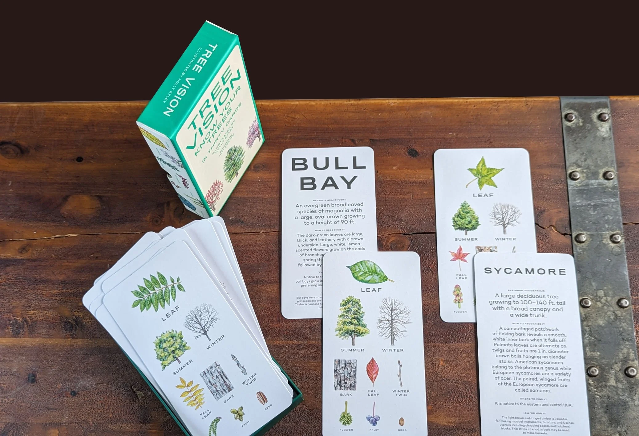 The main content of reference books consist of “entries” of a subject. Take this tree identification card deck below as an example, each card is an “entry” of a tree, with depiction of their visual features, and description of their traits.